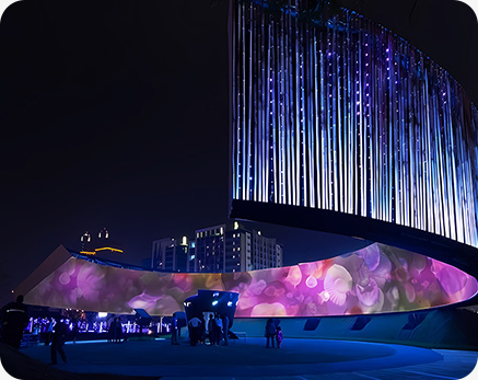數(shù)字信息時代,華竣數(shù)創(chuàng)運(yùn)用燈光秀、超清視頻、特種影院等新媒體視覺藝術(shù)的聲光影電炫酷效果調(diào)動觀者的所有感官全身心參與展廳視聽體驗,享受沉浸式心流狀態(tài)。